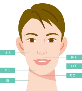 鼻下・口下・ほほ・あご・あご下・首より 3カ所選んでいただけます。
