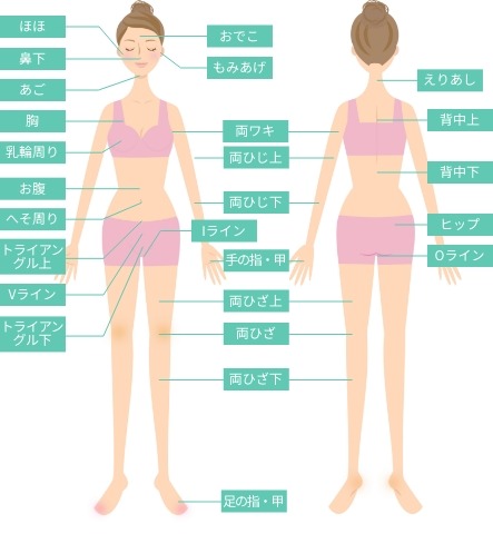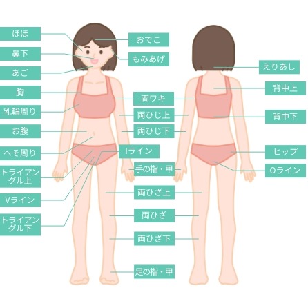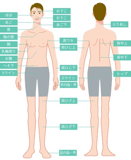 両ワキ・ひじ下・ひざ下等の気になるパーツを全身から